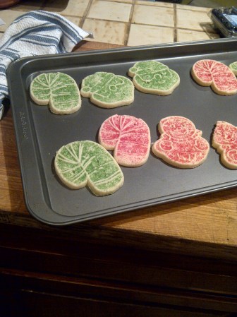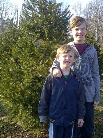 The tree is up — so my boys want their Christmas cookies. We cut the tree down at a Christmas tree farm. You can take a hay ride while they secure the tree to the top of the car.