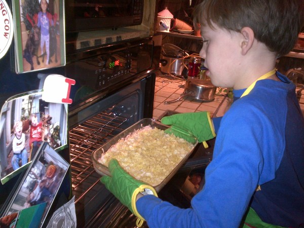 What do a Tony-award-winning musical and dinner have in common? Potatoes. The oven that shorted out on me at the beginning of the cold weather season has been replaced. I asked my guys what should be the first thing we make in the new oven. “Something good,” my little guy said. His brother indulged me with a more direct answer. “Funeral potatoes!”