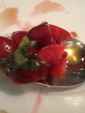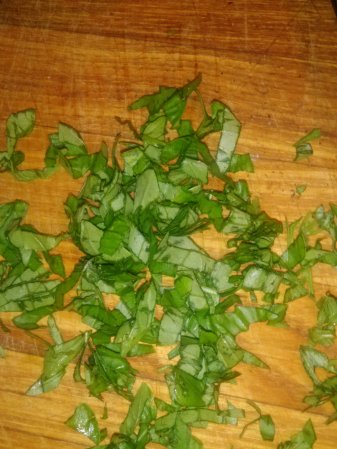 In a bowl, combine the cherries with some good quality olive oil and a bit of balsamic vinegar.The pucker of the cherries and balsamic vinegar are balanced by the fruity flavor of extra virgin olive oil. It may sound odd to add a pinch of salt. It brings these bold flavors into balance. Slice some ribbons of basil and add to the bowl.