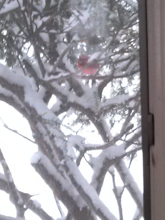 As always, the Cardinals are bright, red stand-out sights against the white snow on the ground, and perched on snowy branches, in the bushes.