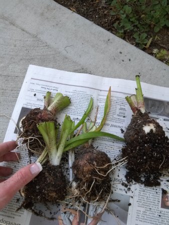 The bulbs need to be as dry as possible since moisture can lead to rotting. You don’t want to plant the bulbs in June because they have not had a season to harden off and the young bulbs could suffer under a punishing summer sun. Keep the bulbs stored until cooler winds are blowing in the fall. Check on the bulbs periodically while they are in storage to make sure the paper towels or newspaper haven’t become wet.