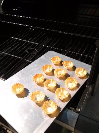 Most gas grills will tell you what the internal temperature of the grill is with a thermometer on the hood. We baked these phyllo cups, for our dessert of berries, on the grill.