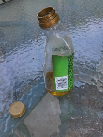 The bottle began to slowly melt, and when the pressure was just about right, the bottle cap shot straight up in the air and over the grill.