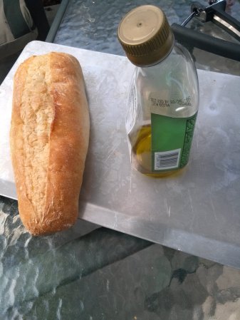 Slice the baguette lengthwise and drizzle with some extra-virgin-olive-oil.