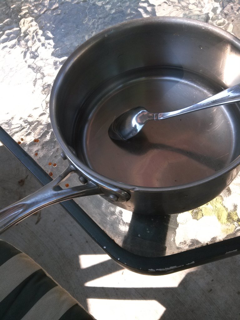 Start by making a simple syrup. Mix equal parts sugar to water.