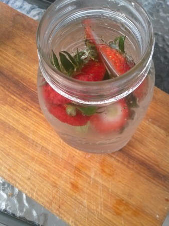 What we had as a result of the stay in the refrigerator was a refreshing drink of strawberry-infused water with a hint of mint flavor.